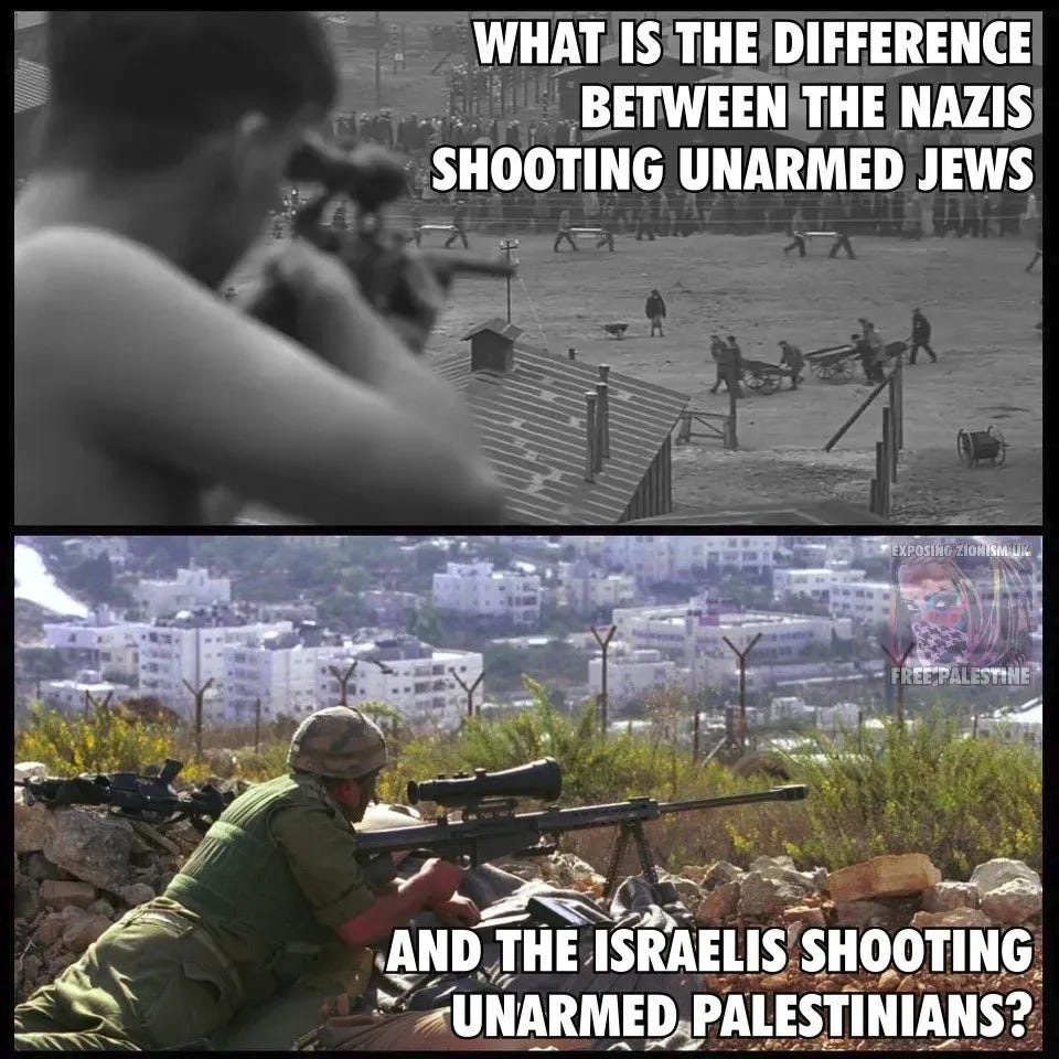 ”ما الفرق بين قيام النازيين بإطلاق النار على اليهود العزل، وقيام الإسرائيليين بإطلاق النار على الفلسطينيين العزل؟“