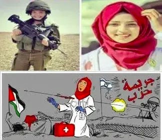 على اليسار توجد ريبيكا الصغيرة، وهي مهاجرة من بوسطن بالولايات المتحدة الأمريكية وقناصة في القوات الإرهابية الإسرائيلية؛ كما أنها مجرمة حرب. على اليمين توجد رزان النجار، وهي مسعفة فلسطينية كانت تعتني بالمتظاهرين العزل الذين كان الإسرائيليون يطلقون عليهم النار من وراء سياج معسكر الاعتقال. كان أول عمل قامت به ريبيكا كقناصة هو قتل المسعفة رزان النجار.